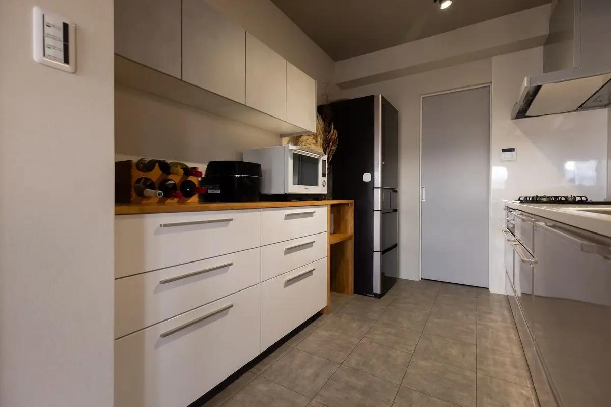 お部屋ごとに工程を組み、たとえば「お風呂と洗面所に1週間」「キッチンに1週間」といったように、1週間単位で1部屋ずつ確実に仕上げていきます。完成した部屋に荷物を移動しながら、最後にリビングを仕上げる流れです。